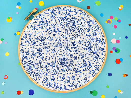 Doodle Flowers Handmade Embroidery Pattern Fabric Pack