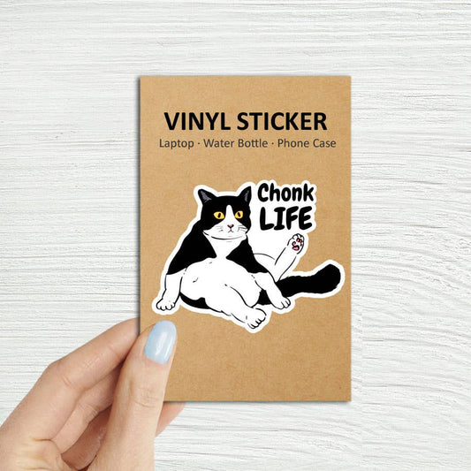 Chonk Life Fat Black Cat Laptop Water Bottle Sticker