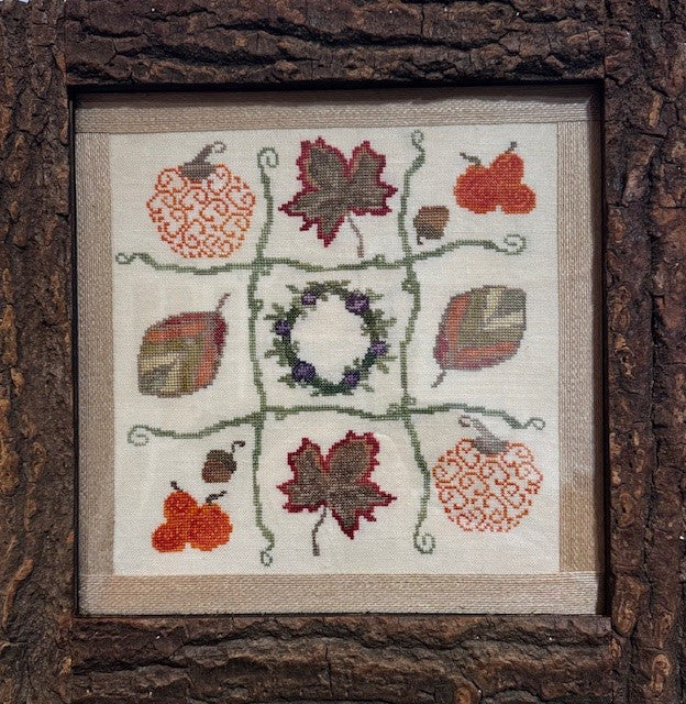 Stitched with Colour and Cotton Threads: Clown, Kindling, Sugar Maple, Funnel Cake, Fritz, Harvest Time, Tadpole, Bonfire, Primitive Plum, Under Your Spell, Dolce, Sweet Basil, Carving Pumpkin, Bonsai